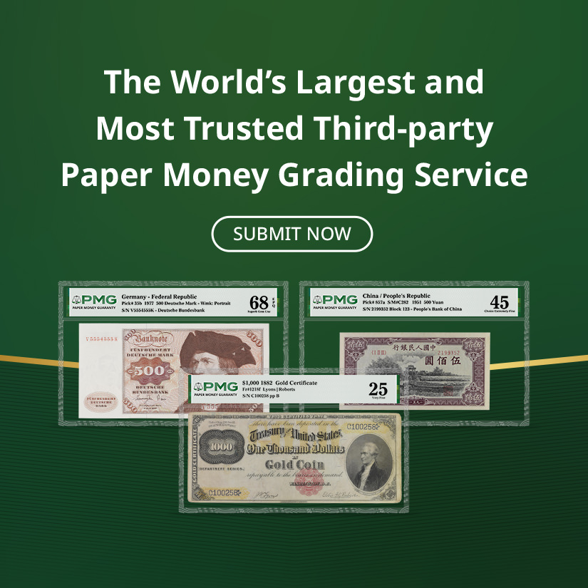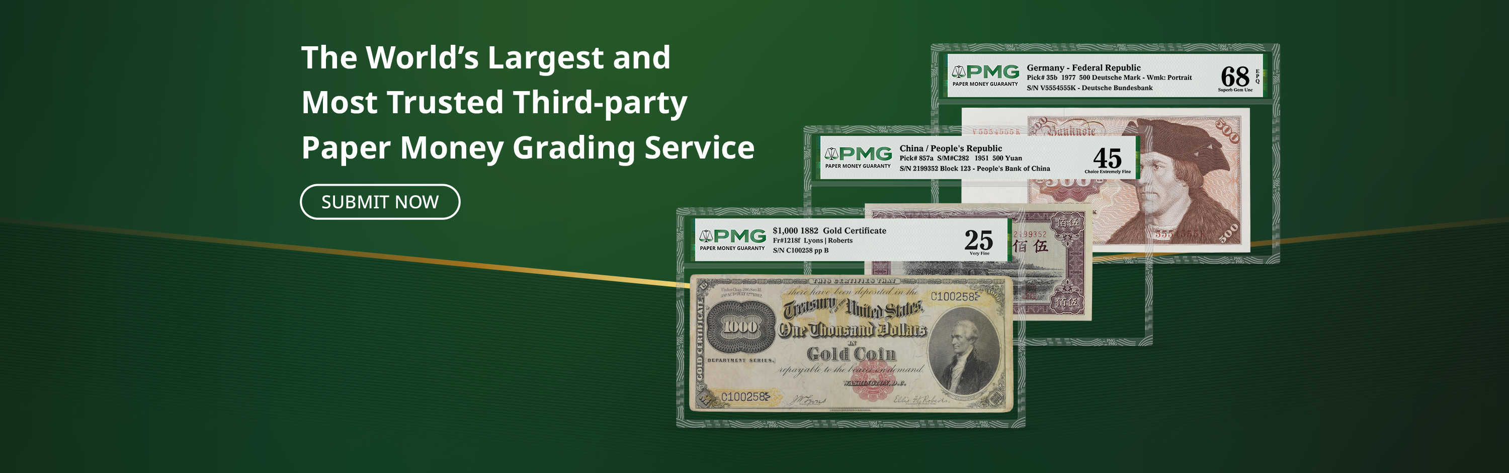 For collectors of banknotes, PMG provides an accurate, consistent and impartial assessment of authenticity and grade, backed by the comprehensive PMG Guarantee, which protects buyers and sellers. PMG is part of the Certified Collectibles Group, whose mission is to empower collectors with services that ignite passion, create value and build community.
