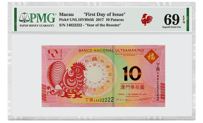 PMG offers the First Day of Issue designation for select notes that are purchased within one day of the first day that a new paper money issue is made available for sale. In some cases, PMG may require a minimum submission quantity for notes to receive the First Day of Issue designation. An article with submission instructions and grading fees will generally be posted to the PMG website prior to an eligible note’s release. In all cases, the First Day of Issue designation is available only by special request and will require a higher grading fee.